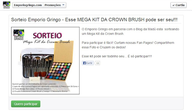 1) É necessário curtir as Fan Pages: Emporio Gringo e Blog da Madú